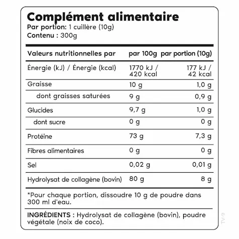 - 100% de collagène sans additifs (8g de collagène pur par portion journalière)