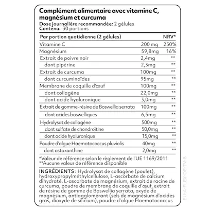 - Contient du curcuma et du boswellia.