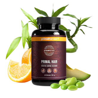 - Des cheveux vigoureux et en apparence saine ne sont pas le fruit du hasard, mais plutôt le résultat d'une alimentation saine et d'un bon apport en nutriments. Une carence en vitamines et minéraux peut se refléter dans l'apparence extérieure, y compris dans les cheveux. Primal Hair contient donc des nutriments essentiels tels que le biotine et le zinc, qui contribuent au maintien de cheveux normaux.